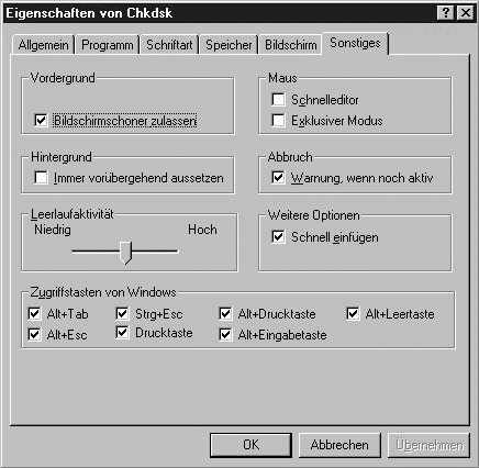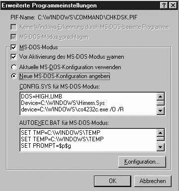 Wie Sie später in diesem Kapitel noch sehen werden, ist das in Abbildung 11.6 gezeigte Dialogfeld wichtig, wenn Sie DOS-Programme anpassen wollen.