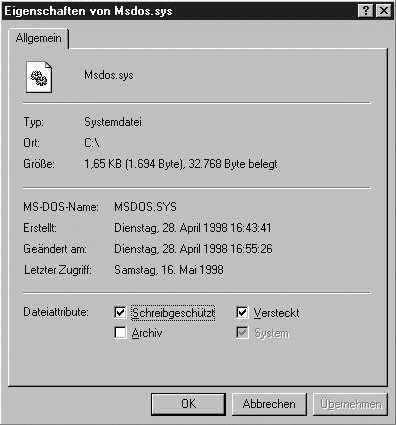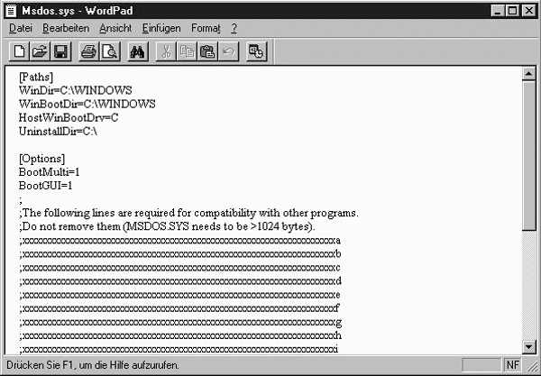 Aufgabe 11.1: Bearbeitung von MSDOS.SYS