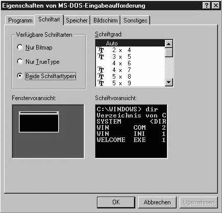 Abbildung 11.6: Das Dialogfeld für die Anpassung der MS-DOS-Eingabeaufforderung.
