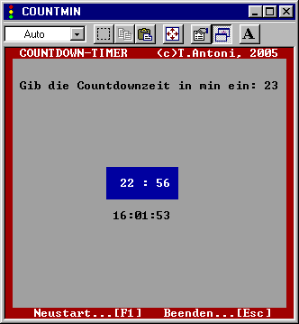 | CountMin.zip (31 KB)  | Thomas Antoni | Countdown-Timer mit Minutenanzeige NEU ! Die neue Programm-Version (vom 27.1.2009) funktioniert jetzt auch unter Windows XP