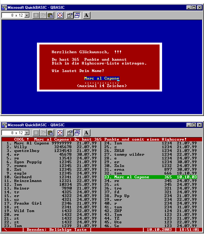| Top96.zip (6 KB)  | Thomas Antoni | Top 96 - Highscore-Generator mit 96 Einträgen !