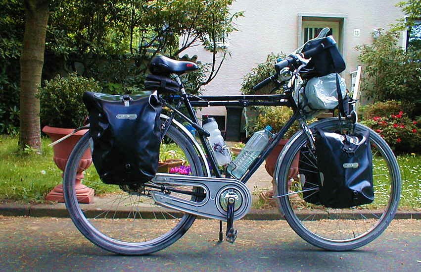 Meine bepackte Wanderdohle mit ca. 30 kg Camping-Gepäck